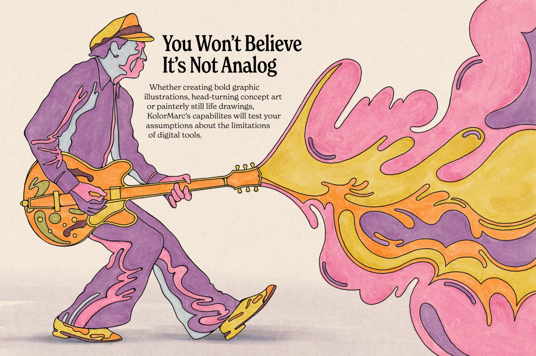 Specifically designed to recreate the silky glide and effortless blending of Copic markers, KolorMarc's finely tuned flow settings and built-in blending board texture allow you to render analog quality work right out of the box*. Featuring a range of nibs, blend styles, and effects, KolorMarc brushes have endured hundreds of hours of real-world testing and relentless comparison with physical markers to create the ultimate studio marker set.